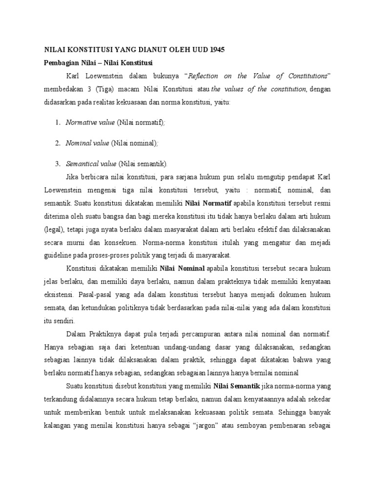 Nilai Konstitusi Yang Dianut Oleh Uud 1945 Pdf